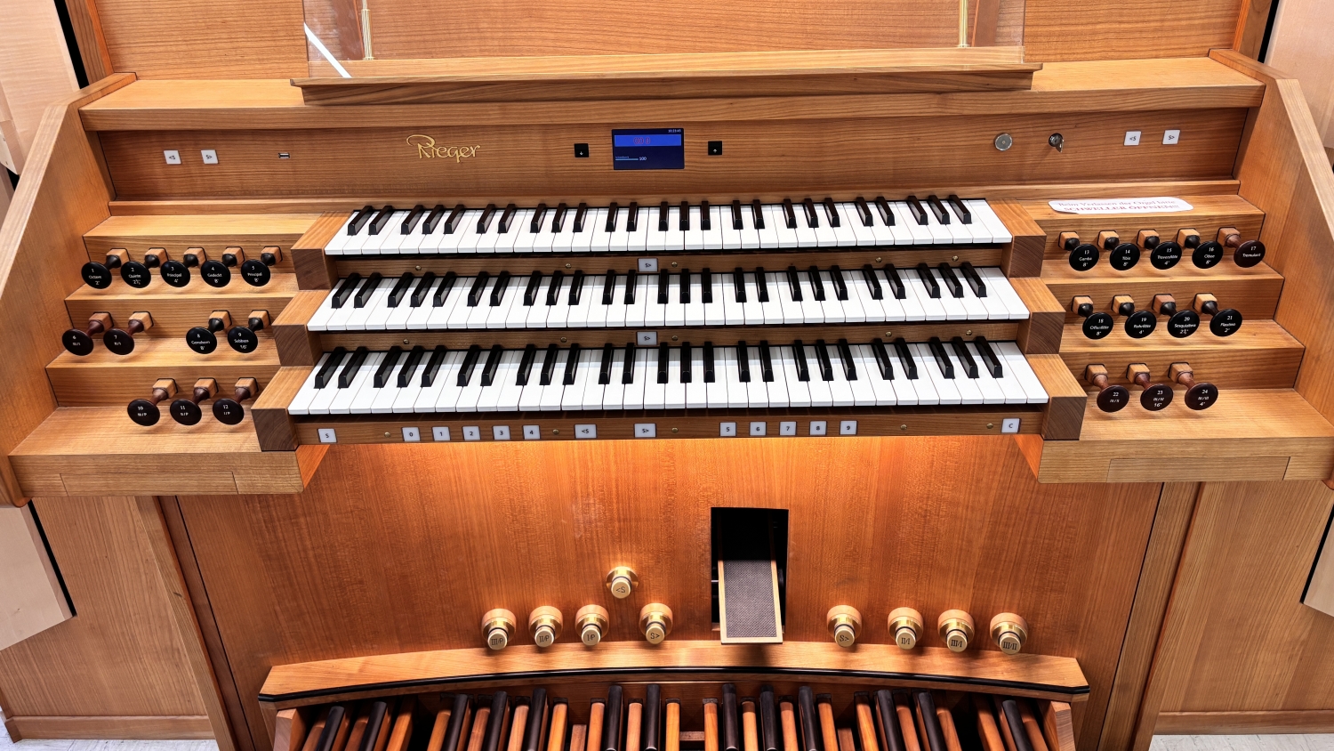 Die trotz einer begrenzten Registerzahl bewusst gewählte Dreimanualigkeit des Instruments ermöglicht die Darstellung einer großen Anzahl an Orgelwerken in Unterricht und Konzert.