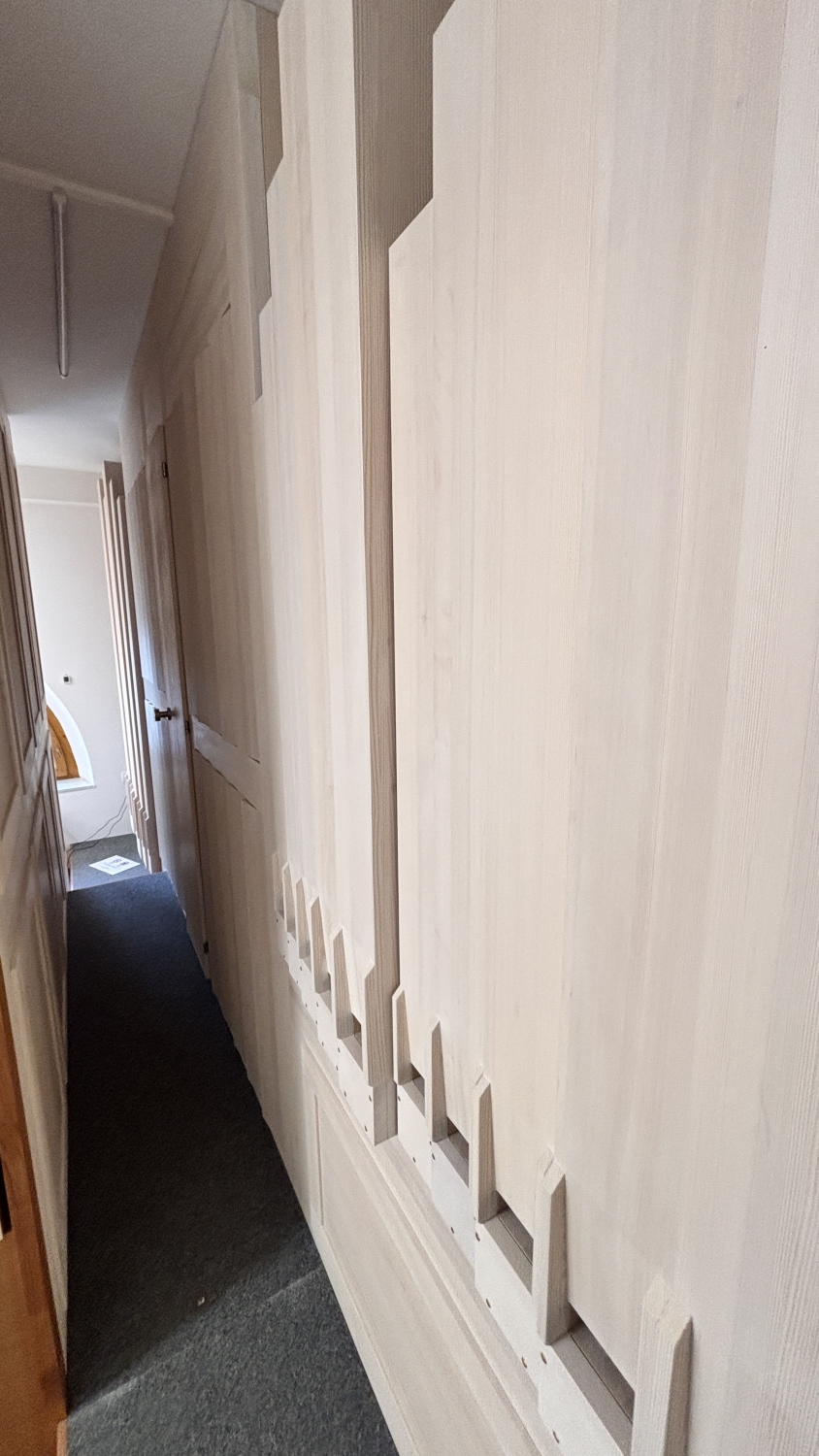 Aus Gründen des Klangs und des Schutzes wurden ausschließlich Holzpfeifen für den sichtbaren Bereich gewählt.